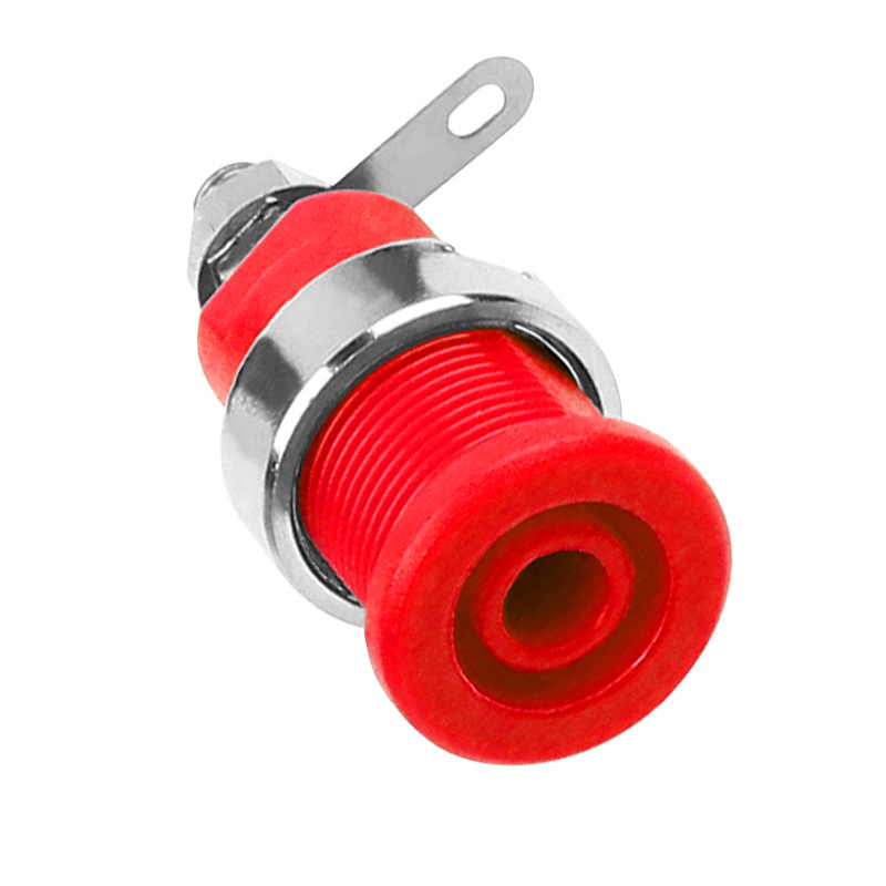 純銅鍍鎳嵌入式4mm輸入端子,采用金屬螺帽直接在面板進行固定,耐高溫尼龍塑料,尾端可焊接。
