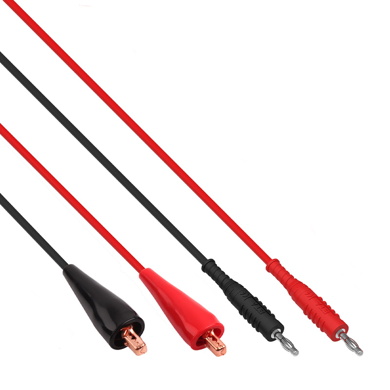 ETA4503香蕉插頭轉(zhuǎn)電夾線,有眾多長度可供選擇,4mm直插香蕉插頭 - 彈簧夾,高質(zhì)量的硅膠導(dǎo)線,可以在寒冷時保持柔軟狀態(tài)。