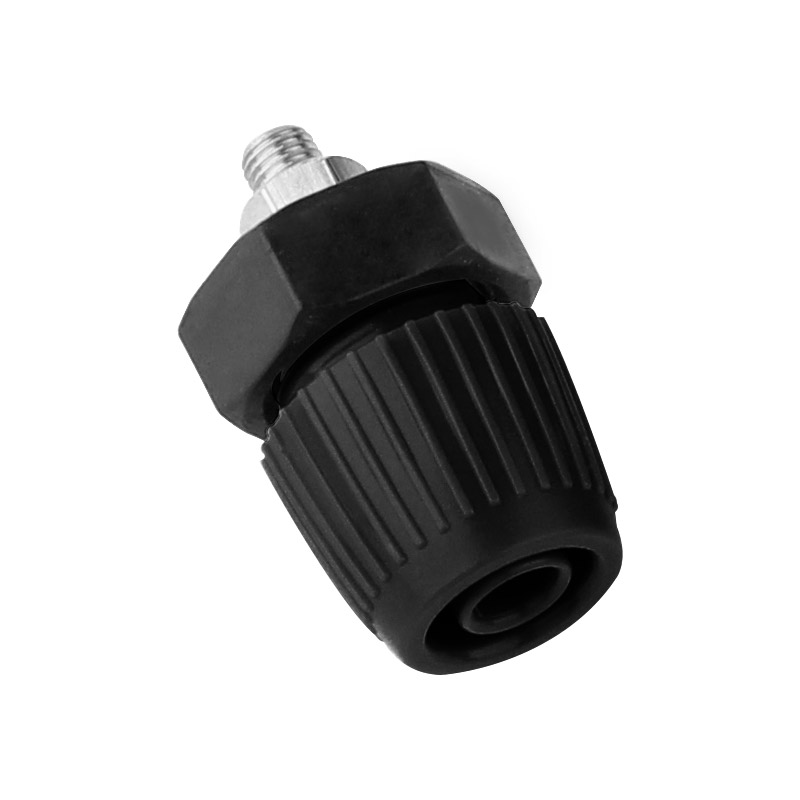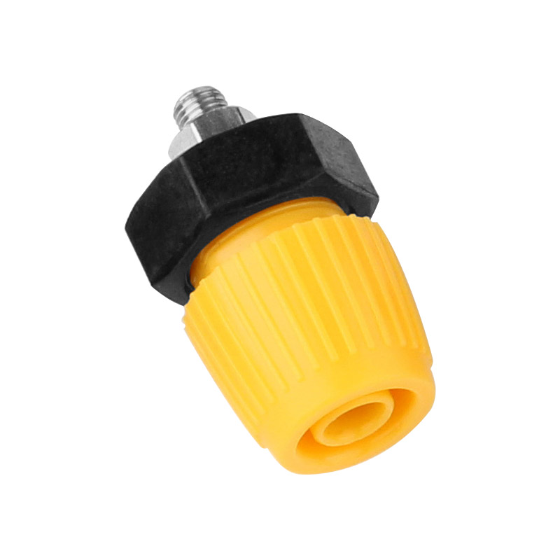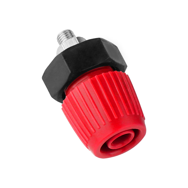 純銅鍍鎳嵌入式3mm輸入端子,采用螺帽直接在面板進行固定,耐高溫尼龍塑料,尾端可使用冷壓端子連接。