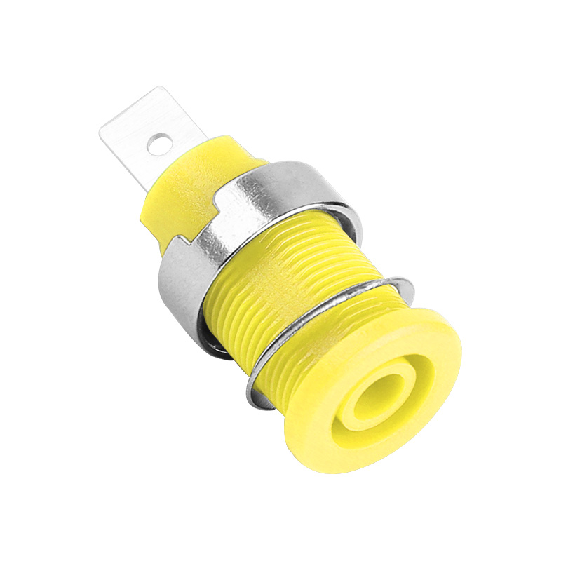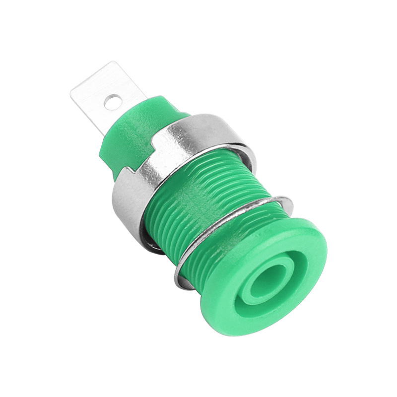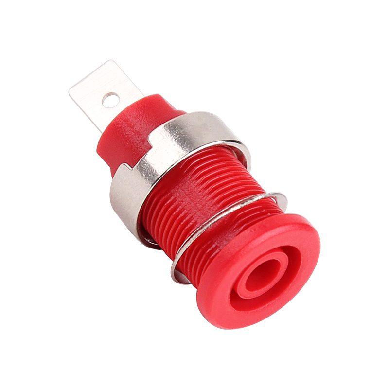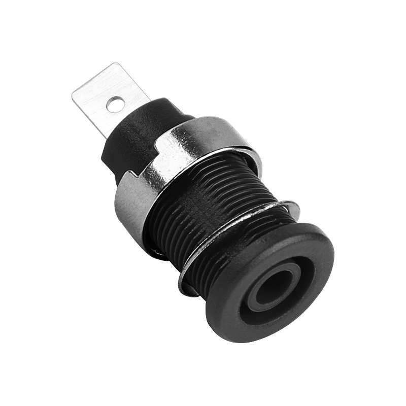純銅鍍鎳嵌入式4mm輸入端子,采用金屬螺帽直接在面板進行固定,耐高溫尼龍塑料,尾端可使用插簧或焊接。